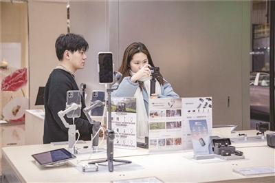 据大疆门店负责人介绍,近年来,随着无人机技术的不断发展和价格的逐渐亲民化,越来越多的消费者开始接触并喜爱上航拍。同时,小巧轻便的口袋相机也受到不少年轻人的青睐,成为热门选择。记者 徐帆 文/摄