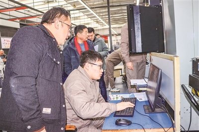 在金华职业技术大学航空工程学院数控加工技术实训中心,浙赣“蔚蓝计划”培训班学员进行产品设计、数控编程加工、电气控制等技能展示,用人单位边看边问,并一一拿起学员手边的简历浏览。随后,学员还与用人单位面对面交谈,详细了解公司情况、人才需求等。