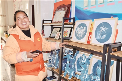 记者看到,在大厅两旁的架子上,还分门别类地摆满了成员们日常参与制作的扎染、简笔画、剪贴画等各种手工作品,以及各类集体活动的合影。