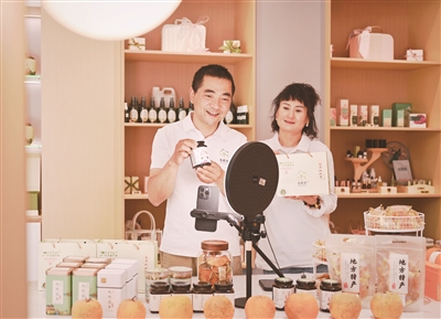 5月17日,在位于婺城区罗店镇罗店村的金玳堂·共富工坊,“玳玳花果膏”制作技艺非遗代表性传承人方健,通过线上直播推荐玳玳花果制作而成的创新产品,拓展销售渠道,推动“婺城玳玳”品牌走向全国。