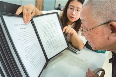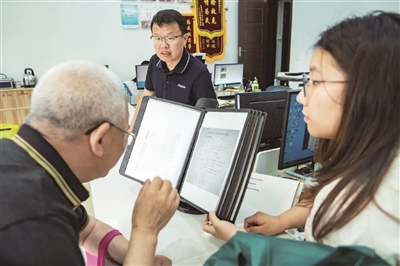 近日,74岁的居民武宪增带着对旧房装修补贴政策的疑惑,来到婺城区城北街道站前社区党群服务中心,社区工作人员为其仔细介绍补贴政策相关事项。