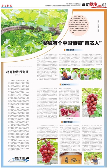 “育种是农业的根本技术。”童洪升说,接下来,基地将继续借助区第一良种场的资源优势与平台支撑,加大科研创新力度,选育更多优良葡萄品种,推动当地乃至全国葡萄产业高质量发展,为乡村振兴注入强劲动力。