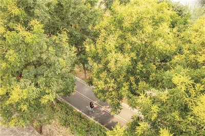 据悉,栾树是秋季主要观花观果树种之一,花期可持续至10月中下旬。入秋渐深,栾树枝头将陆续结出黄绿色的蒴果。届时,红、橙、黄、绿诸色交织,景致比花开时更为绚烂。记者 徐帆 文/摄