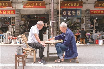 与周边的现代商业体相比,小码头街巷狭窄,店面传统,房屋低矮。可是,每天都有一串串脚步朝它奔赴而来,离开时,手里或拎着绿油油的辣椒苗,或带着崭新的渔网,或捧着热乎乎的烧饼油条。在这里开五金店、铁店、渔具店、塑料店、蒸笼店的人,大多上了年纪,喝茶、看报、下棋、整理账目,不急不躁。